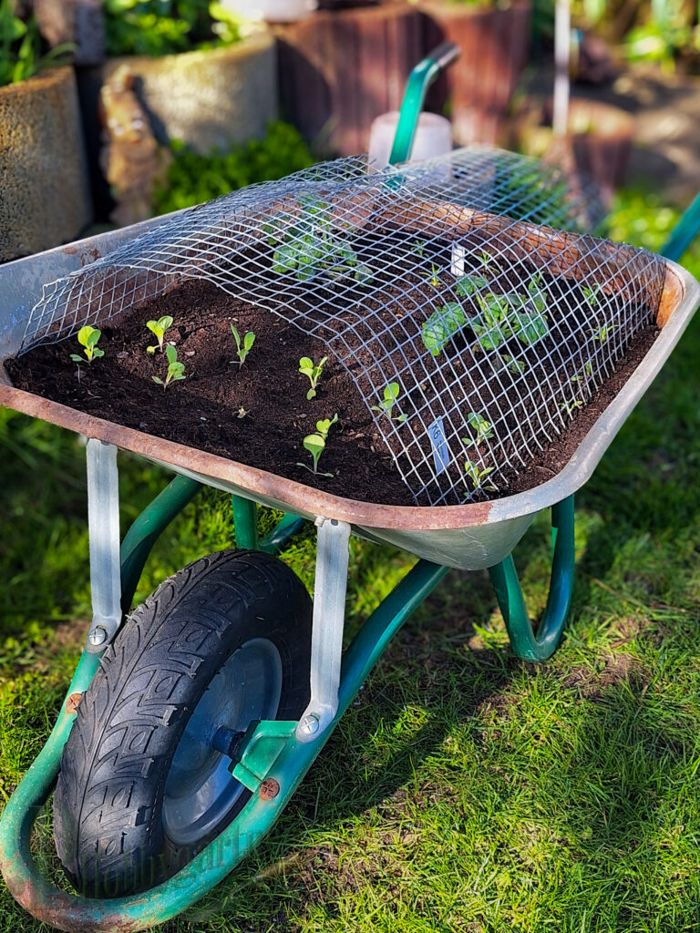 - Die Security: Ein Drahtgeflecht sorgt dafür, dass Vögel draußen bleiben und die Katze mein Beet nicht mit ihrem Privat-Klo verwechselt. #FortKnoxStyle